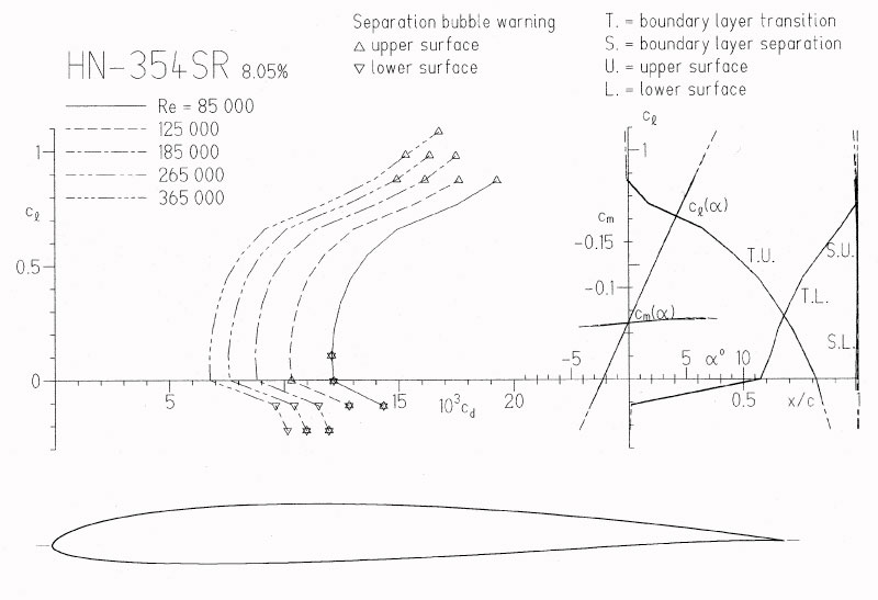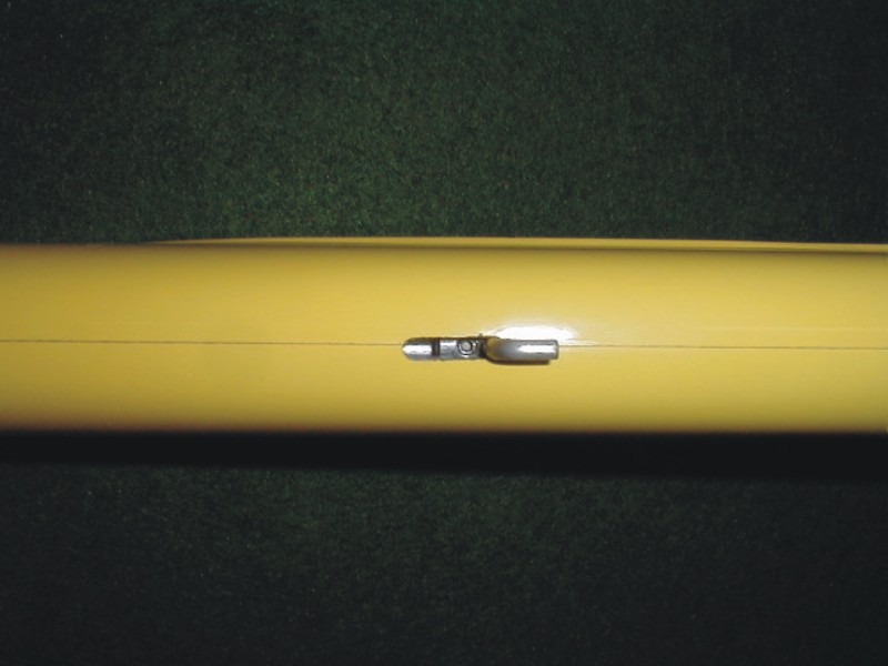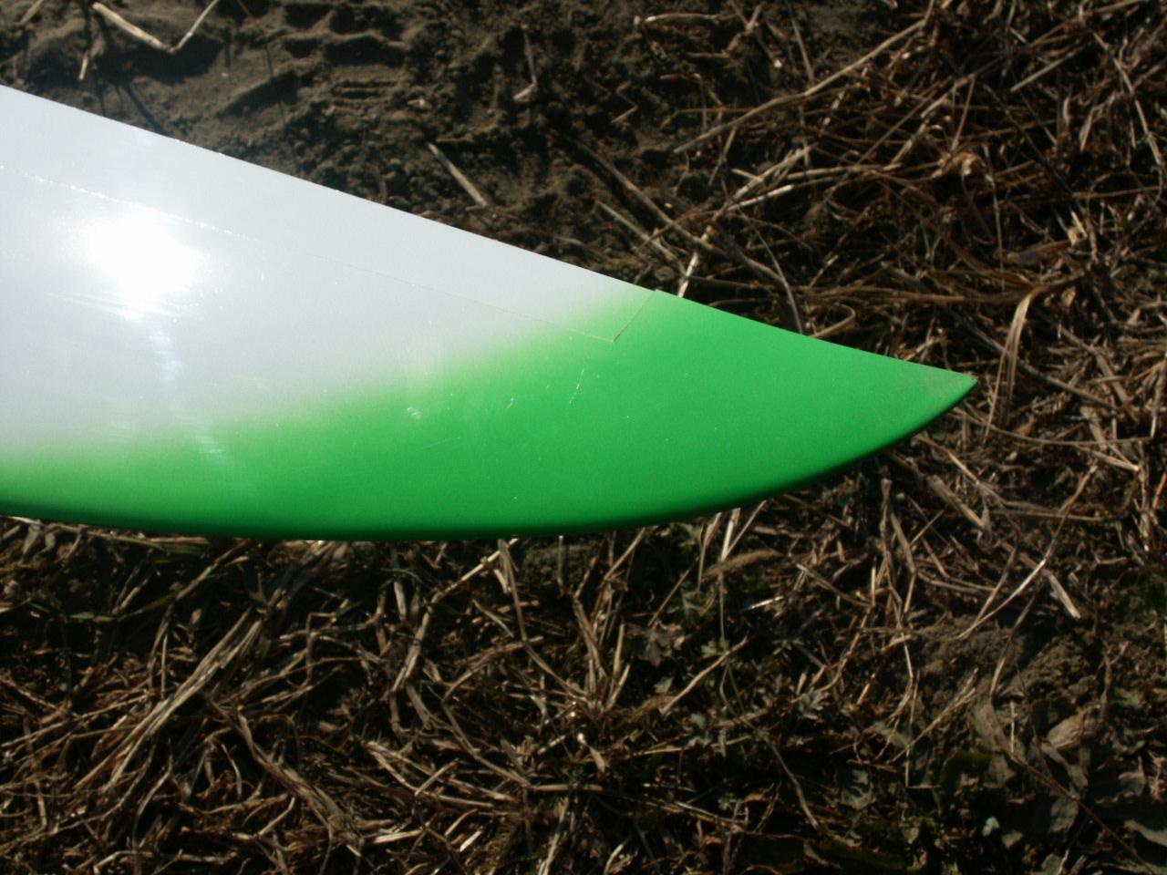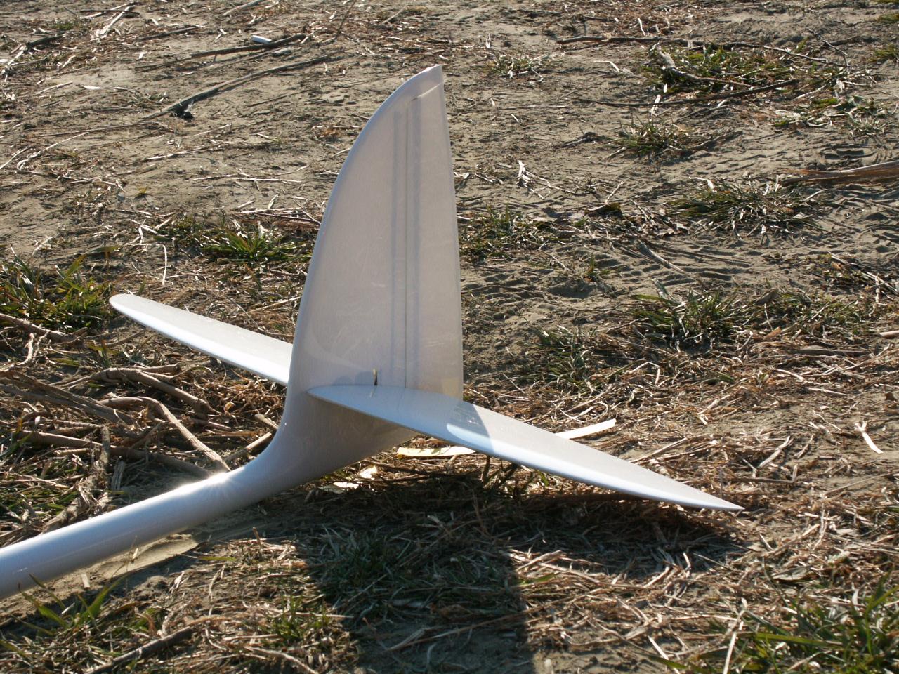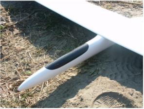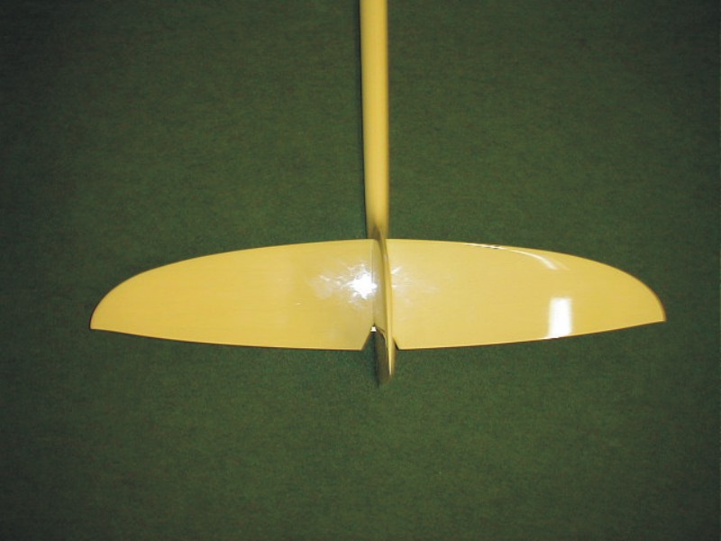 HabeのラインアップであるHNです。主翼は比較的新しい翼型であるHN354SRであり、十字翼は全てがHN315Sである。主翼、尾翼及び胴体は、すべてCNC技術で製造された鋳型(モールド)から成形されています。この技術は、所望の形状を精度を保証しながら量産する上では最高の技術です。十字型尾翼は、V-tailより、安定したヨー(yaw)の機体を生み出せると期待されます(原文ではshouldが使用されている)。(F3Jにおいて)他の良い点は、主翼端部の上反角よりは、むしろ主翼が多段上反角になっている点である。これは製造上、あるいは鋳型成形では難しいのですが、安定性を改善する上では価値があります。 (宮川さんの日本輸入初号機へのコメント: 2001/12/29) Task Cのターンの際の小気味よい跳ね返りは、主翼のスパー方向の強度から得られます。主翼端の一方を地面に他方を手に持って上下に振ってみると、少し柔らかそうな感触で、宮川さんの話しでは、EstrellaやChampion等の主翼と比べると若干強度は少ないようです。これは値段相応というところでしょう。ただし、表面剛性(さわった感じ)は、ガチガチでこれは戦えそうという感触です。主翼は3分割されていますが、かんざしは、少し細めでEllipse の初期のかんざしのような太さということです。 これがスパー方向の強度にどの程度、影響を与えているかは、飛ばしてみないと分かりません。 |