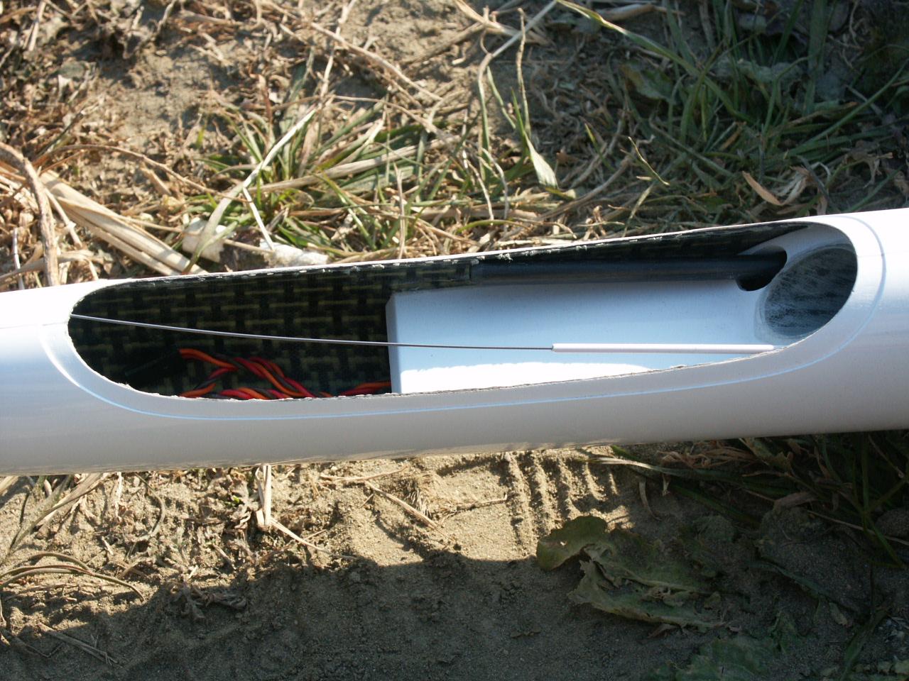 NYXのC-tail付け根だけでなく胴体自体がかなり太く丈夫です。まだ飛行していないのでなんとも言えないのですが、ねじれについては問題なさそうです。 メカ積み:コクピット内は一寸見ると広そうなのですがJR1100mAhは入らず700mAhの俵型の電池 しか入れることができませんでした。エレベータサーボに標準型のJR NES4131を積んだこととノーズバラスト250gが必要だと思われたのでラダーサーボはマイクロサーボを受信機の脇に貼り付けなければなりませんでした。翼のメカ積みはカバーがいろいろ用意されているので簡単でしたがホーンの穴の位置にばらつきがありストロークを合わせるのが一寸面倒。CGはスパーの10mm後ろで、フックは一番前にセットしました。飛行重量は2300gになりました。以上でメカ積みは4〜5時間というところでしょうか。 |