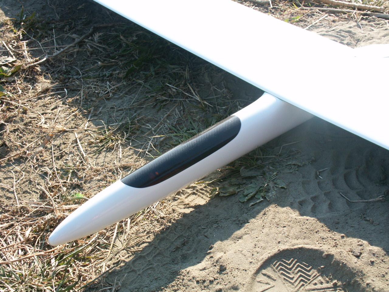 Cのターンでも問題はなさそうです。キャノピー仕様は、米国市場を意識したのではないかと思われますが、品質はよく、簡単に取り外しができます。ノーズを握ってみるとかなり硬くノーズコーンに引けをとらない強度です。C-tail胴体で最も問題になるのは、尾翼部の胴体を主軸とした回転方向のねじれです。曳航時に横風を受け尾翼部が回転すると思いもよらない方向に飛んでいきます。ScarのC-tail付け根は写真で見てもかなり細く、実際飛行中にも、かなりC-tailと主翼の位置関係がずれてしまうようです。